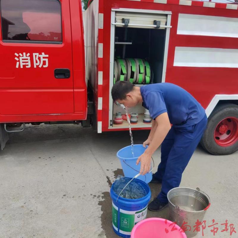 據了解,當地受高溫干旱影響,已有多日無生活用水,只能求助消防隊送水。接到求助電話后,上埠鎮政府專職隊立即將消防車進行了清洗,重新裝修上干凈的自來水后駛向受災村莊。