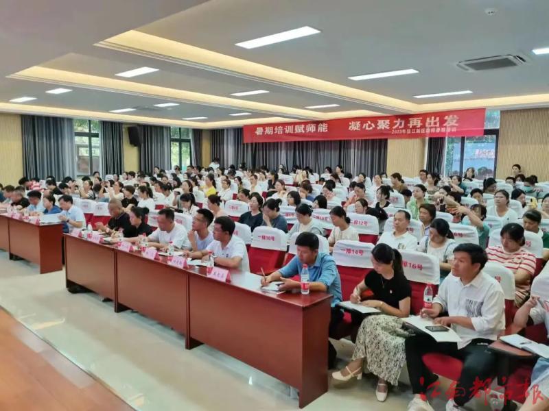 近日,鷹潭信江新區教師暑期培訓班在鷹潭市十一小開班,信江新區文教體局全體干部、各中小學校長、教師共180余人參加。(信江新區文化教育體育局)