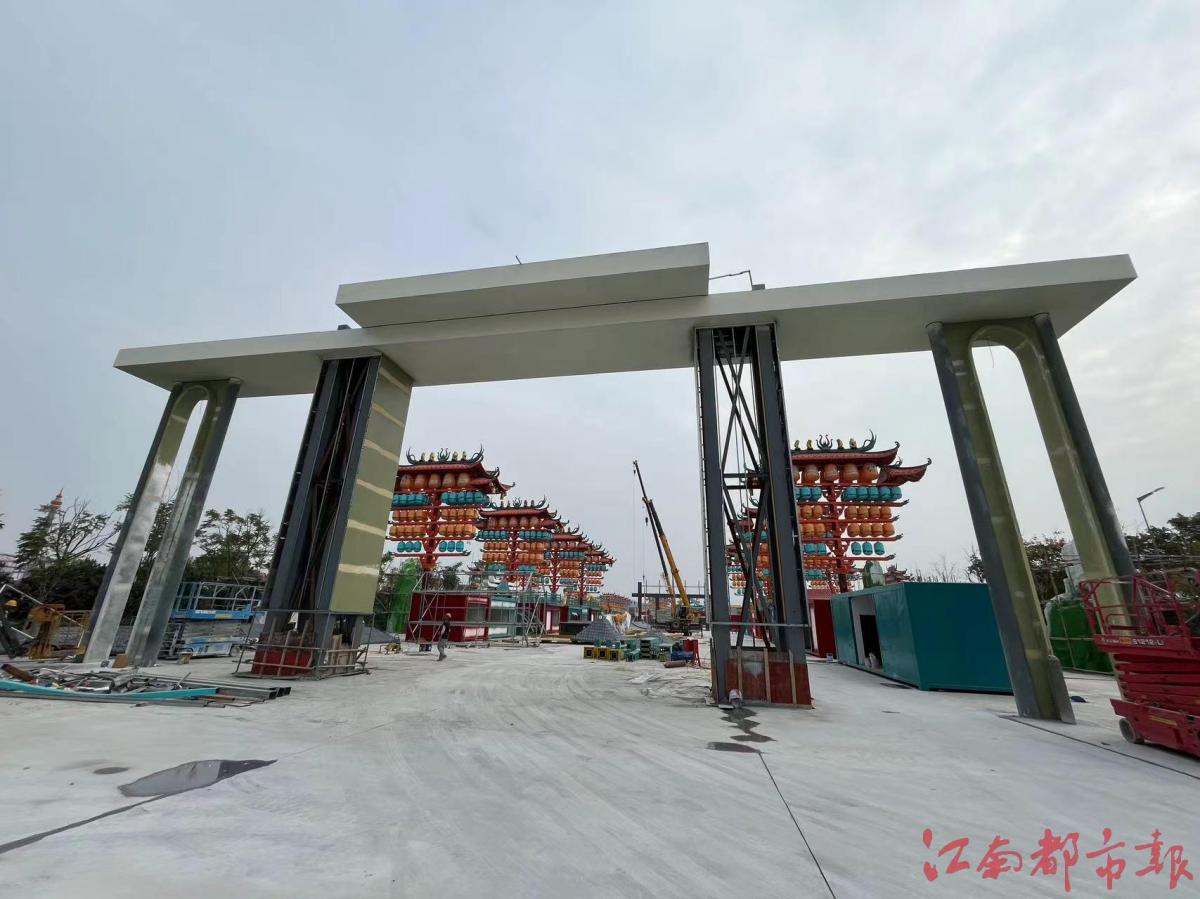 江南都市報訊 胡慧明、全媒體記者王平攝影報道:由鄱陽湖生態科技城規劃建設的“九江之夜”項目,將于11月1日正式開放。10月20日,記者在工地現場看到,工人們正熱火朝天進行收尾施工。
