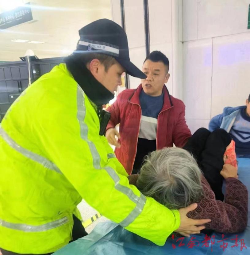 江南都市報訊 全媒體記者胡琴攝影報道:1月21日,記者從宜春交警部門獲悉,1月20日,今冬最強寒潮來襲,宜春市袁州區一名老人獨自烤火時,摔倒在火坑邊,因行動不便,腳掌伸入火中燒傷。家屬在送醫過程中,向宜春交警求助。鐵騎隊員李青在寒潮中冒雨開道,騎摩托車引導運送傷者的車輛以最快速度到達醫院,挽救了老人的生命。
