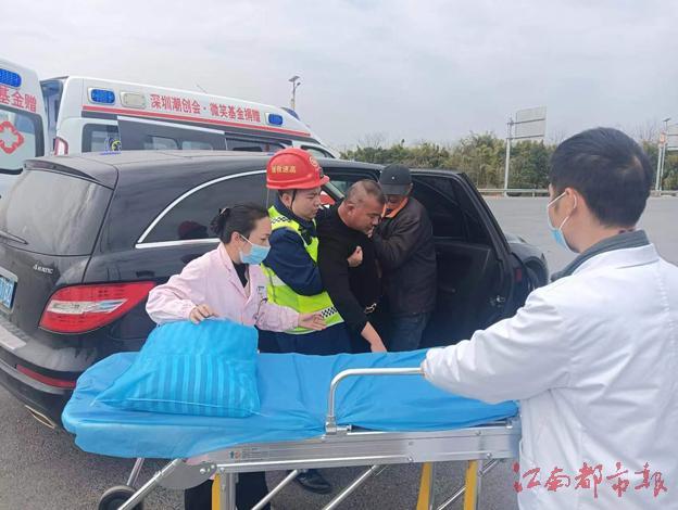 2月17日,贛州車輛救援大隊(duì)于都東中隊(duì)在寧定高速寧安段巡路時(shí)發(fā)現(xiàn)一輛小車停在應(yīng)急車道上,司機(jī)未做任何安全保障措施。班長(zhǎng)周文煜立即上前查看,只見司機(jī)面色蒼白、呼吸急促,捂住胸口趴在車門上。“師傅,您是哪里不舒服嗎?”“我心肌梗塞突發(fā),藥吃完了”……情況緊急,周文煜和同事即刻展開救援,在做好安全圍蔽后將司機(jī)扶到護(hù)欄外草坪上平臥休息,并聯(lián)系120急救中心。為了爭(zhēng)取寶貴的搶救時(shí)間,他們開車將司機(jī)送至仙下收費(fèi)站出口與急救車匯合。司機(jī)第一時(shí)間被送至醫(yī)院救治。