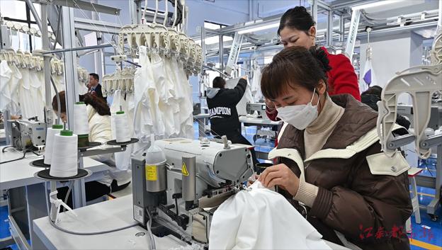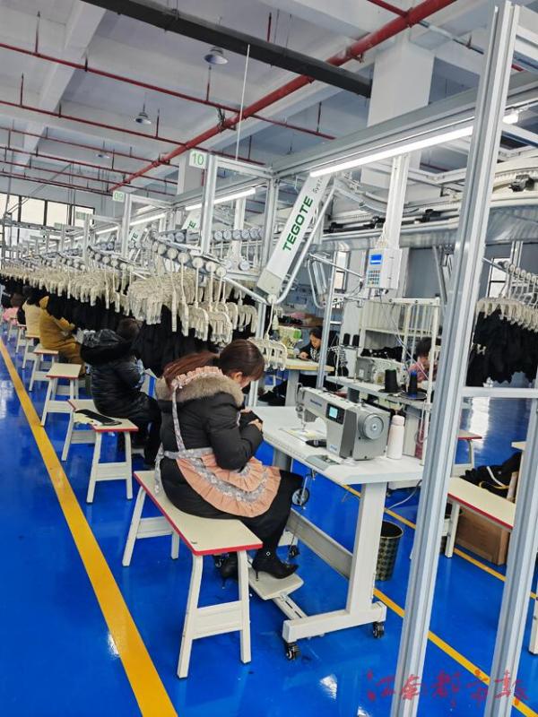 產業興旺是實現鄉村振興的基石,生活富裕是鄉村振興的目標。文坊鎮副鎮長周勇說,為保障鷹潭市花橋水利樞紐移民就業問題,該鎮大力推動產業振興,通過鄉賢牽線搭橋,順利引進5G服裝智造項目落戶產業園區。產業園區規劃建設350畝,項目一期去年12月竣工,在文坊鎮招商安商、積極調度下,5G服裝智造項目同步實現了投產。