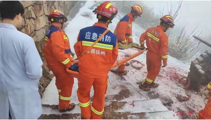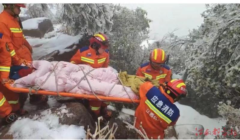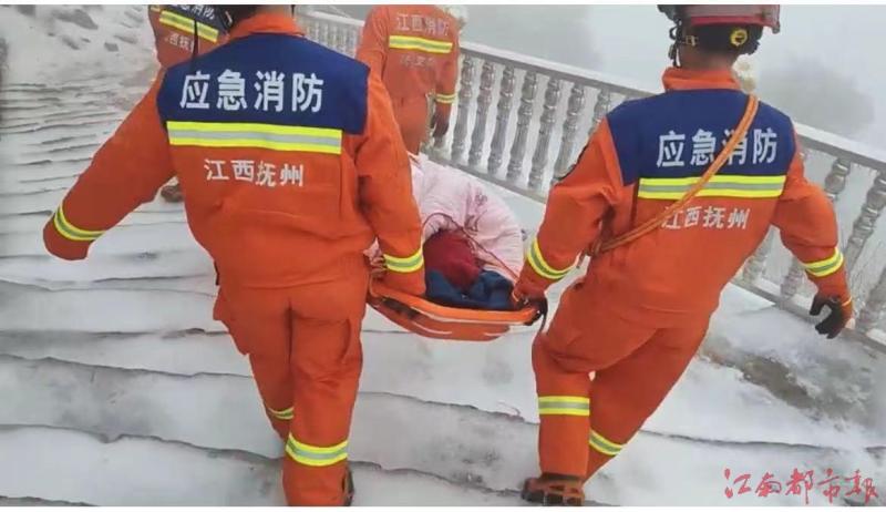 江南都市報訊 全媒體記者舒曉燕攝影報道:2月25日,金溪縣黃通鄉白馬嶺山頂一老人摔傷,消防救援人員接警后,徒步往返兩個多小時護送老人下山接受治療。