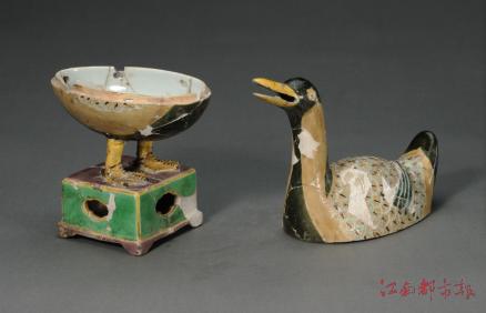 記者從發布上獲悉,燒造于大明成化年間的“素三彩鴨形香薰”,當年因工藝的超高難度和御窯的嚴格揀選制度,被打碎深埋珠山500余年,1987年經考古出土現身,為御窯所獨有,不見傳世。其獨特的形態構造和細膩的色彩紋理令人著迷:張嘴吐舌,花眼圓睜,曲項向天。豐腹斂翅,周身以黃、綠、紫等素色為飾,神態安然地立于四壁鏤空開光的底座之上。鴨身分上下兩截,上部為蓋,下腹燃香,頸與腹中空,腹以子母口相合,子口口沿布隱孔六,進氣即可與微啟的鴨嘴形成對流。2023年,景德鎮御窯博物院與故宮博物院合作修復了第6只鴨薰,以這種方式讓“歲歲鴨”首次“進了宮”。 (本報曾在《500多歲“碎碎鴨”華麗重生》一文中進行專題報道)