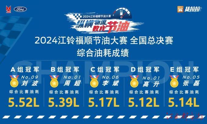 經(jīng)過(guò)三個(gè)多月初賽和復(fù)賽的激烈角逐,“縱橫物流,數(shù)我節(jié)油”2024江鈴福順節(jié)油大賽全國(guó)總決賽于7月20日在南昌火熱開(kāi)賽。來(lái)自全國(guó)各地的貨運(yùn)高手,通過(guò)與江鈴福順的默契配合,工作中練就的省油技巧,跑出超低油耗紀(jì)錄。劉波、周超、李斌、高升、張磊五位選手以小組第一名的好成績(jī)榮獲“福順節(jié)油王”,贏得萬(wàn)元大獎(jiǎng)。其中高升取得的綜合比賽油耗5.12L全場(chǎng)最佳,成為2024江鈴福順節(jié)油大賽“全國(guó)總冠軍”。而江鈴福順“節(jié)油高效”性能也是深入人心。