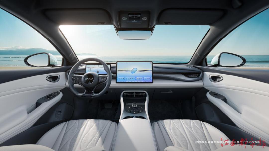內飾設計以簡約為主基調,在保留海洋美學舒展柔美的同時又不失速度感和張力。此外,基于e平臺3.0 Evo所帶來的技術優勢,海豹06GT的軸距達到2820mm,實現中級轎車的空間自由。