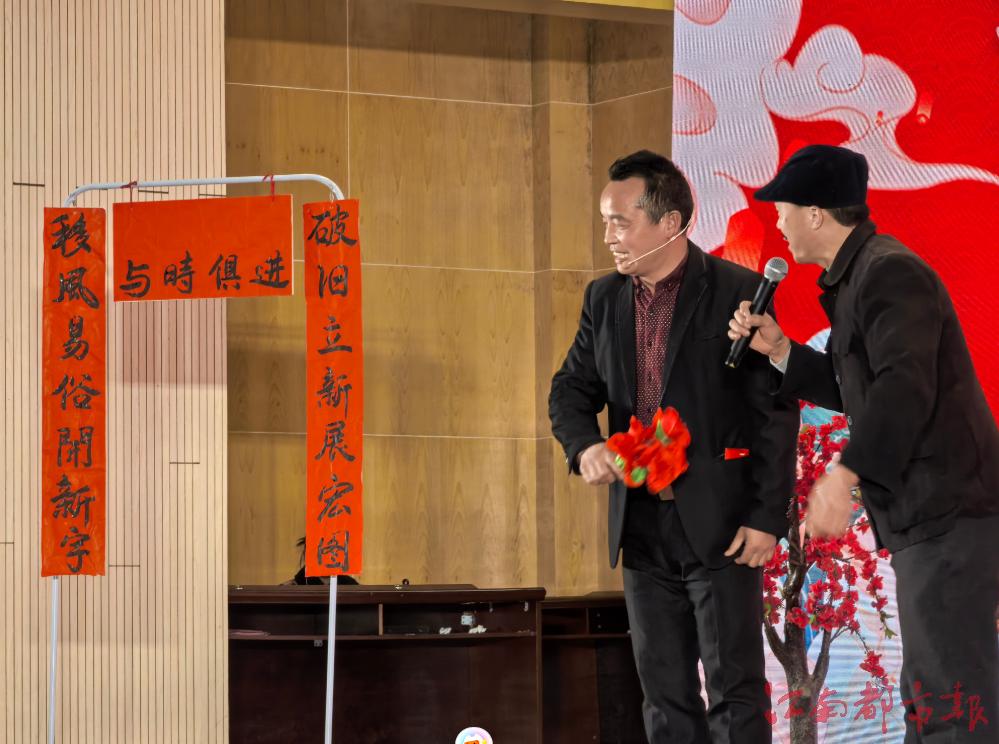 江南都市報訊 蘭春、蔣麗、彭樹美、全媒體記者盧勇攝影報道:“婚喜事,簡辦好;講文明,樹新風;不攀比,無煩惱……”近日,在吉安市青原區(qū)新圩鎮(zhèn)移風易俗優(yōu)秀典型頒獎文藝匯演上,由該鎮(zhèn)自編自導自演的采茶戲《阿東相親》等節(jié)目贏得群眾陣陣掌聲。