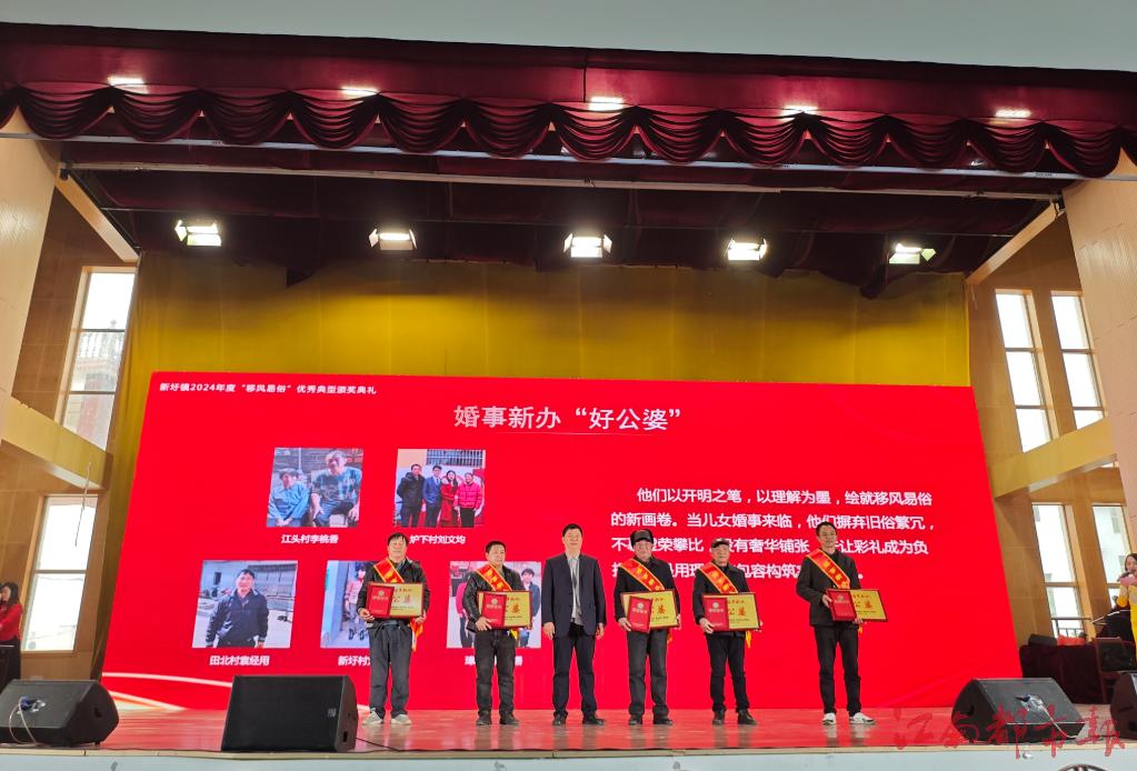 活動現(xiàn)場,該鎮(zhèn)還對婚事新辦“好公婆”、孝老愛親“好媳婦”、愛人以德“好鄰居”、移風易俗“好家庭”、弘揚新風“好家庭”等五類先進典型25名優(yōu)秀代表進行了頒獎。