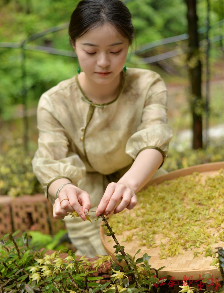 24歲的謝滿月白凈秀氣,很難讓人想象,還是一副靦腆小姑娘模樣的她竟然能干出在紅豆杉上栽種鐵皮石斛這件事。