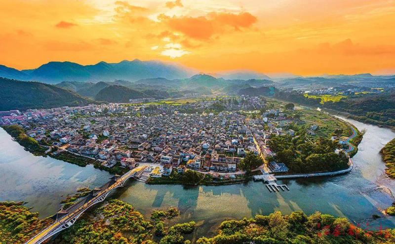 青山環(huán)抱、江水環(huán)繞的流坑古村。(歐陽順 攝)