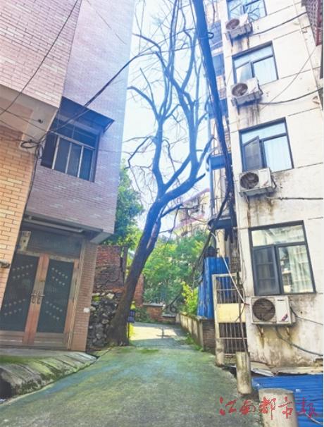 當天,記者來到該居民區一斜坡路段出入口看到,這棵樟樹足有7層樓高,不少枯死的樹枝搖搖欲墜。此外,樟樹兩邊緊挨居民樓,下方豎著一塊寫有“此處危險 注意安全”的警示牌。“去年冬天,這棵樟樹還是枝繁葉茂,今年春天逐漸落葉后遲遲不見新發嫩葉,隨后逐漸枯死。”現場,一居民告訴記者,如今樟樹已經完全枯死了,且出現了掉落樹枝的情況。有關部門也沒有及時處理,這樣的不安全因素應盡快消除。