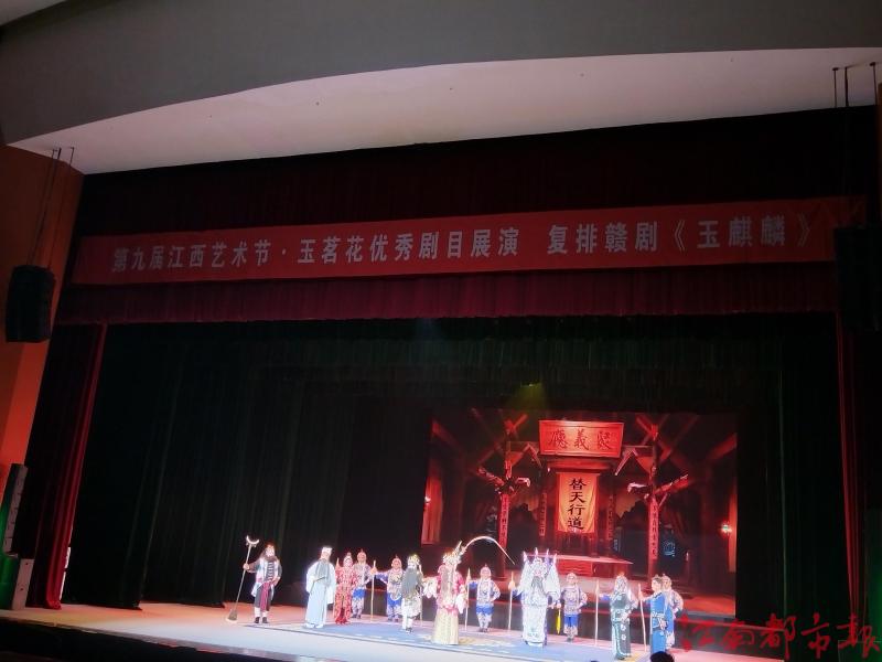 本報訊 全媒體記者趙瓊攝影報道:9月18日晚,南昌群星劇場座無虛席,來自全省各地的贛劇戲迷將劇場擠得滿滿當當,由上饒市廣信區信河贛劇演藝有限公司復排的傳統經典贛劇《玉麒麟》參加第九屆江西藝術節、第十二屆江西玉茗花戲劇節專場展演。