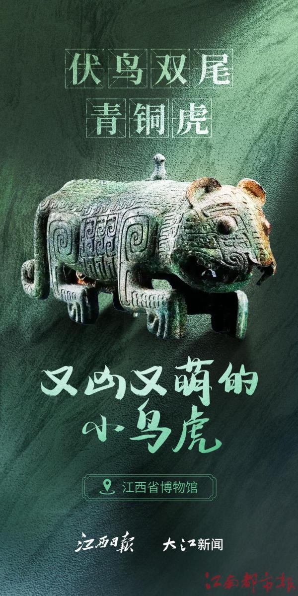1989年新干大洋洲商墓開(kāi)啟,這尊伏鳥雙尾青銅虎驚艷眾人。它虎目圓睜,獠牙外露,背部伏著一只昂首挺立的小鳥,全身布滿雷紋與夔紋,威嚴(yán)中透著靈動(dòng)。距離新干大墓不遠(yuǎn)的吳城遺址,已經(jīng)證實(shí)了江西在商代時(shí)期就已經(jīng)擁有發(fā)達(dá)的青銅鑄造技術(shù);而新干大墓的發(fā)現(xiàn),更是徹底打破了“商代文明不過(guò)長(zhǎng)江”的固有認(rèn)知,成為長(zhǎng)江流域青銅文明的璀璨坐標(biāo)。