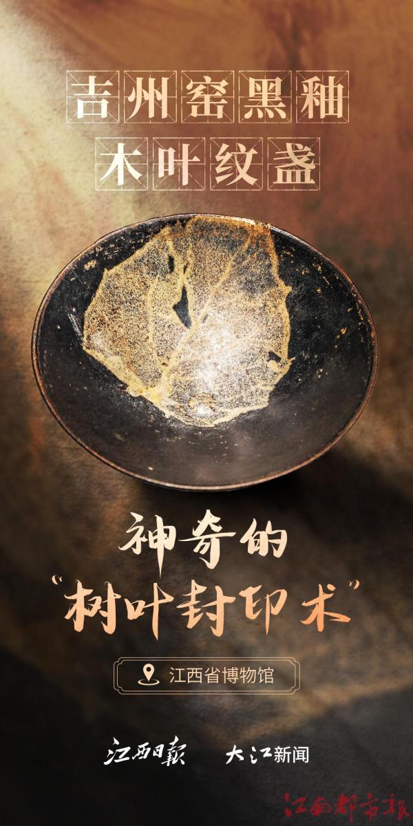 位于吉安縣永和鎮(zhèn)的吉州窯,比景德鎮(zhèn)更早聞名于世。它的代表瓷器——黑釉木葉紋盞,留存著一片完整的木葉印痕,葉脈紋路清晰可見(jiàn),宛如自然生長(zhǎng)其中,意境悠遠(yuǎn)。吉州窯工匠選取桑葉或菩提葉,經(jīng)特殊處理后貼于坯體,燒制時(shí)葉片碳化,在黑釉上留下永恒的木葉輪廓。宋代時(shí),吉州窯的黑釉瓷因適配斗茶需求而聲名遠(yuǎn)揚(yáng)。當(dāng)景德鎮(zhèn)青白瓷以光影變幻展現(xiàn)美感時(shí),吉州窯用木葉、剪紙貼花等工藝將茶碗打造成藝術(shù)品,成為宋代茶文化中極具韻味的代表。